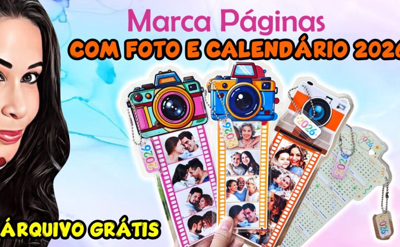 3 Marcadores de página com fotos e calendários 2026 | molde grátis